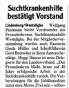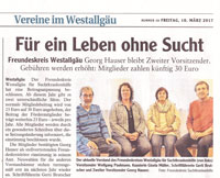Eindeutiges Votum: Auf der diesjährigen Mitgliederversammlung des Freundeskreises Westallgäu Suchtkrankenhilfe wurde der stellvertretende Vorsitzende Georg Hauser für weitere drei Jahre einstimmig wiedergewählt. Freundeskreisleiter Wolfgang Paulmann dankte Hauser für die gute Zusammenarbeit in den letzten Jahren.