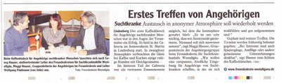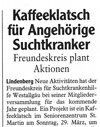 Der erste Kaffeeklatsch für Angehörige suchtkranker Menschen war in den Augen der Veranstalter ein Erfolg Er fand in der Cafeteria im Seniorenheim St. Martin in Lindenberg statt ...